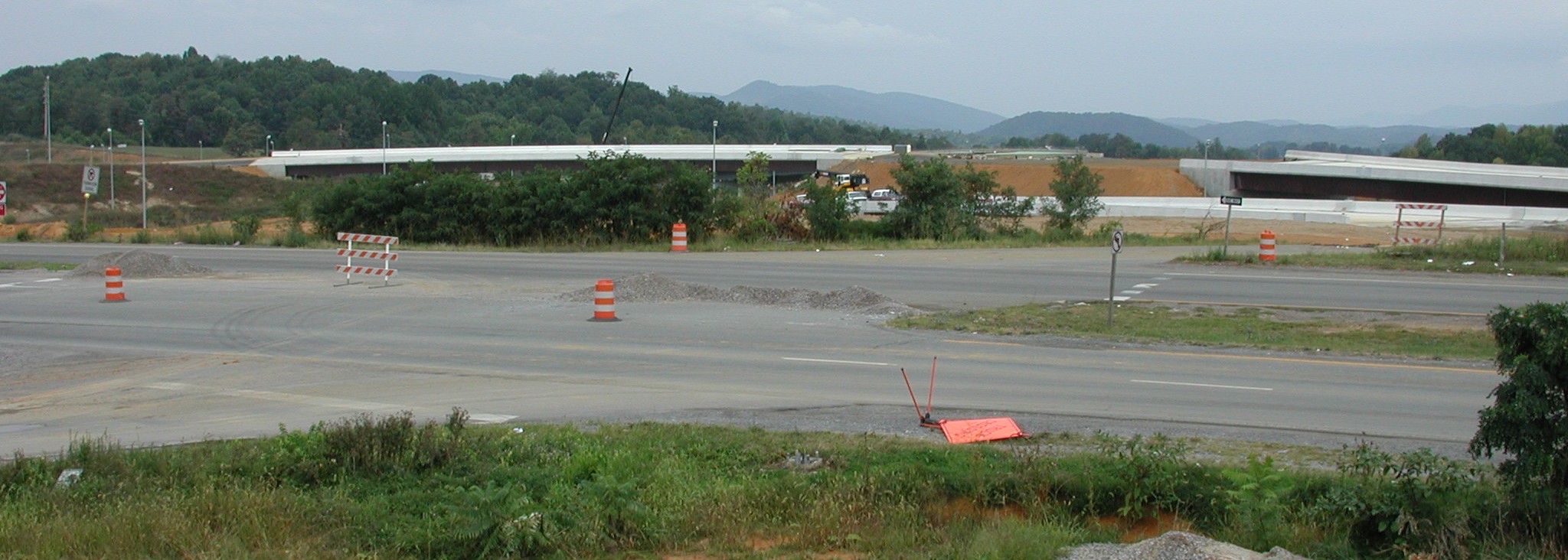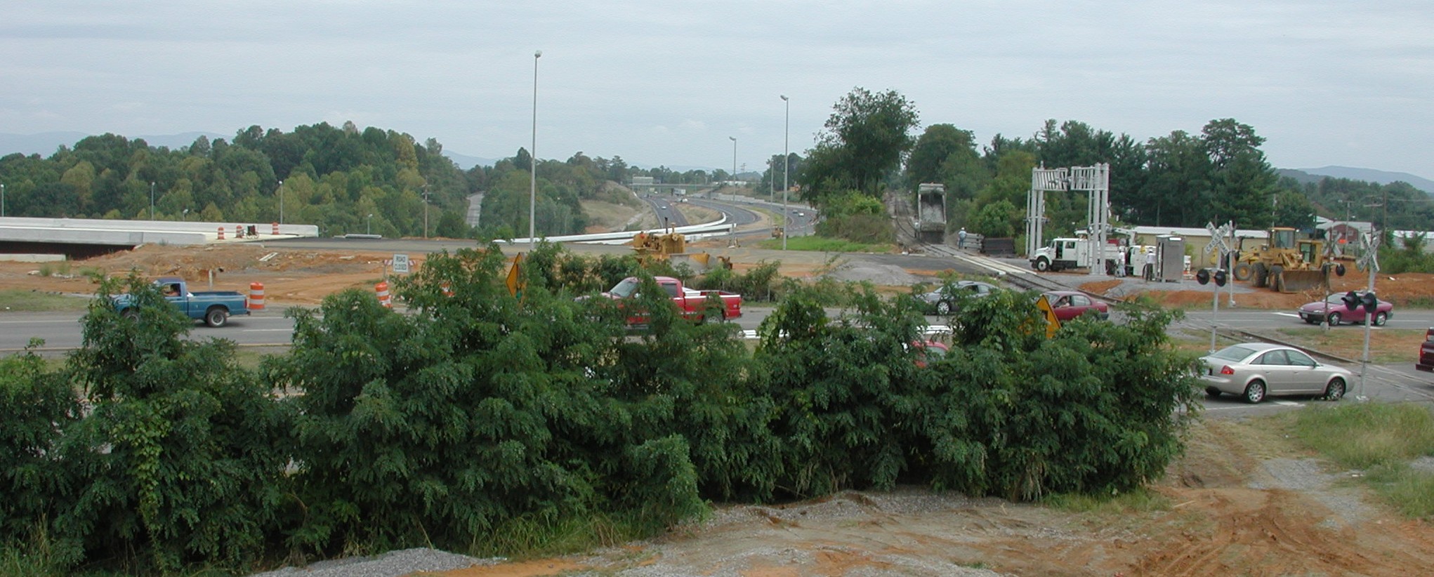 ![]() Christiansburg -- Looking east from Palmer Street (original U.S. 460 before construction of the Christiansburg Bypass in the '60s). In the far distance is the Yellow Sulphur Road overpass. The lanes with traffic are the present North Franklin Street, crossing the Blacksburg Branch of Norfolk Southern (also known as "The Huckleberry"). Just beyond this crossing is the new crossing for the northbound lanes of North Franklin Street and the ramp to U.S. 460 Bypass east. North Franklin Street will continue across the bridge. The blue pickup truck is located about where the ramp from the bypass (both directions) will merge with southbound North Franklin Street. |